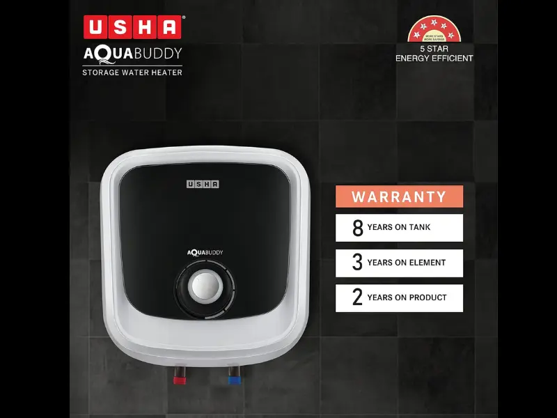 The USHA Aquabuddy Neo geyser is built for long-term use—crafted with anti-corrosive materials that resist rust and hard water damage. Its energy-efficient design makes it one of the best water heaters electric geysers in India, delivering optimal heating while keeping your electricity bill under control.
